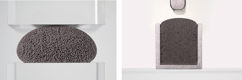 Das Video zeigt die Polyurethan Schaumdichtung FERMAPOR K31 im Querschnitt - zuerst im unverpressten Zustand, dann zu 50 % verpresst, damit ist die Dichtfunktion der Abdichtung gegeben.