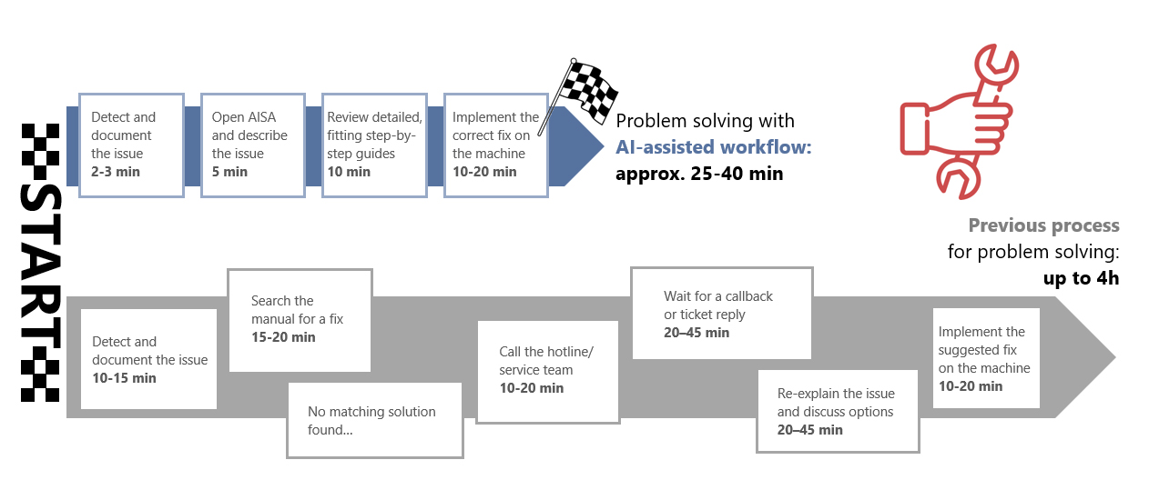 - Efficient error detection and resolution supported by the AI Service Assistant streamlines production processes.